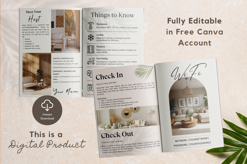 Editable Airbnb Welcome Book Template: Canva Host Guide (Digital Download)