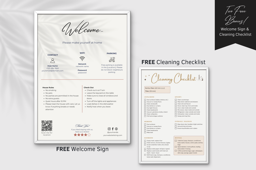 For personal/commercial use in your own properties or your co-hosting clients. No resale, sharing, or redistribution of the templates or files.